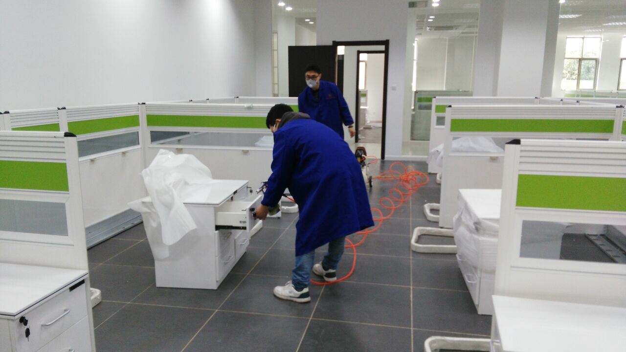 根據(jù)實地考察該單位裝修特點,結(jié)合先前檢測的數(shù)據(jù)報告,我們?yōu)槠渥隽嗽敿毜氖┕ぶ卫矸桨?,并報其公司領(lǐng)導(dǎo)審核,經(jīng)刪選同意并認可我公司的施工治理方案。經(jīng)過施工治理——復(fù)檢修補——驗收審核等工序,該工程于近日全部完工。下圖為工程施工現(xiàn)場: